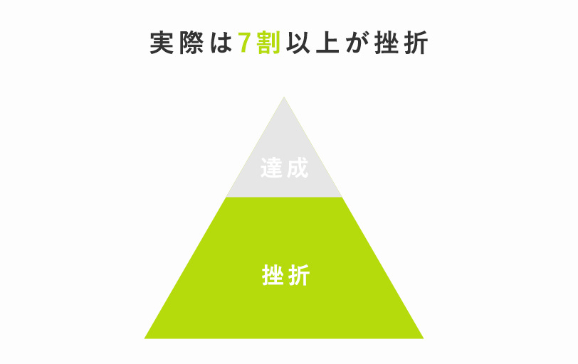 闇① 【挫折者多数の問題】 表向きの実績は多いが、裏では挫折率が7割で高い